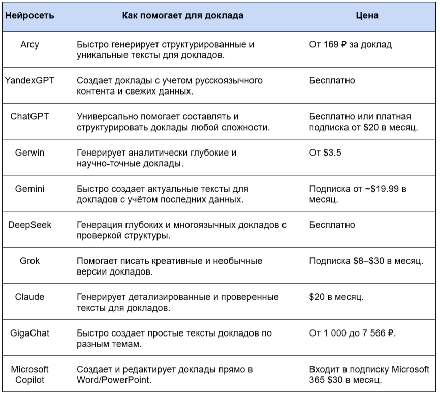Выбор нейросети для доклада зависит от ваших конкретных задач, бюджета и уровня требований. Написать доклад с помощью ИИ сегодня проще, чем когда-либо, но ключ к успеху — разумное сочетание технологий и человеческого контроля.