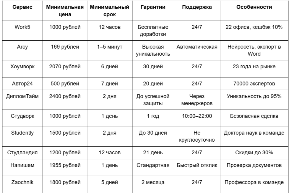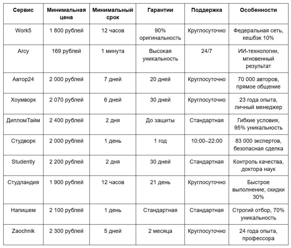 Мы проанализировали десятки платформ и выбрали лучшие сервисы по соотношению цены, качества и надежности. В нашем рейтинге учитывались отзывы студентов, сроки выполнения, гарантии и стоимость услуг.