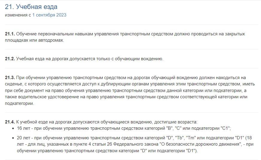 Согласно Ст.21 п.4 ПДД РФ, к учебной езде на категорию «B» и «C» допускаются лица, достигшие 16-тилетнего возраста.