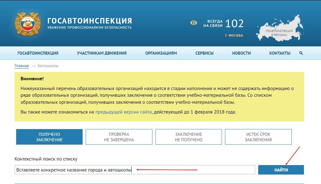 Фото: Скриншот с сайта https://госавтоинспекция.рф/drivingschools