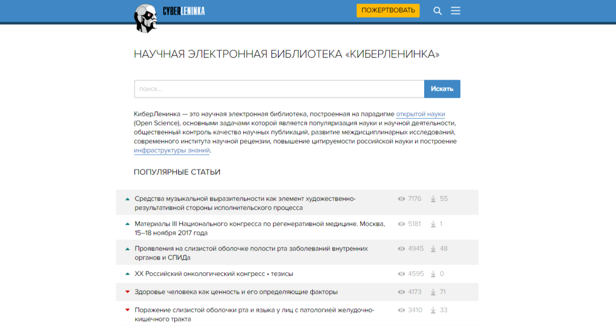 Помимо КиберЛенинки существуют и другие электронные научные библиотеки: elibrary.ru, IEEE/ASPP, MYBRARY и др.