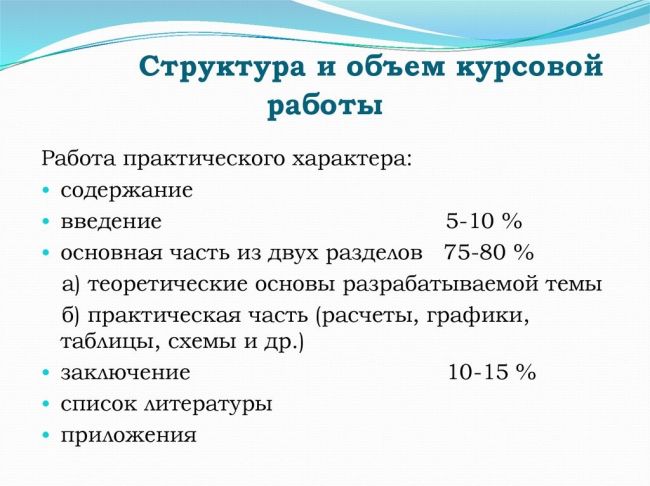 Перед тем, как начать выполнять курсовую работу, необходимо учитывать объема, посредством изучения государственных стандартов и общих требований. Какие размеры можно будет у структурных элементов? И как увеличить объем материала, если он оказался недостаточным?