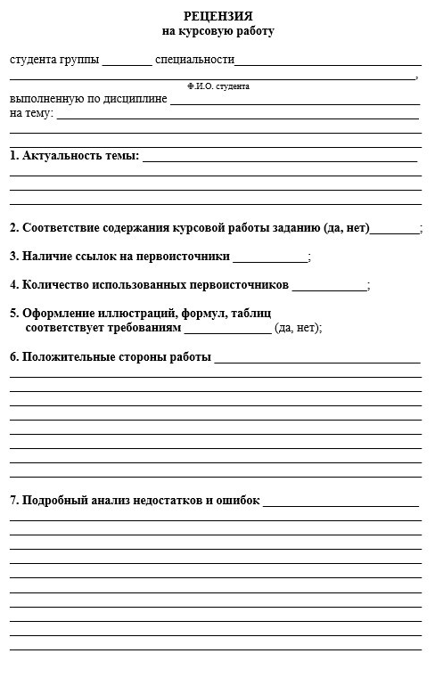Таким образом, рецензия необходима для всестороннего анализа курсовой работы, выявления её достоинств и недостатков, а также для поддержки и развития навыков студента в написании научных и исследовательских работ.