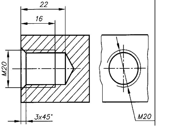 Резьба также прорисовывается на основании стандартов ГОСТ. Сбег, недорез, недовод отображаются с помощью специальных обозначений согласно стандарту.