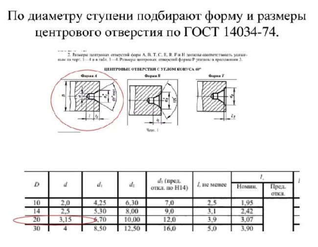 Образуется на элементе при проведении центрования при использования центровочного сверла. Оформление должно производится на основании государственного стандарта номер 14034-74 – формирование центровых отверстий.