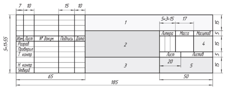 Размеры основной надписи на чертежах и других конструкторских документах регламентируются стандартом ГОСТ 2.104–2006 «Основные надписи».