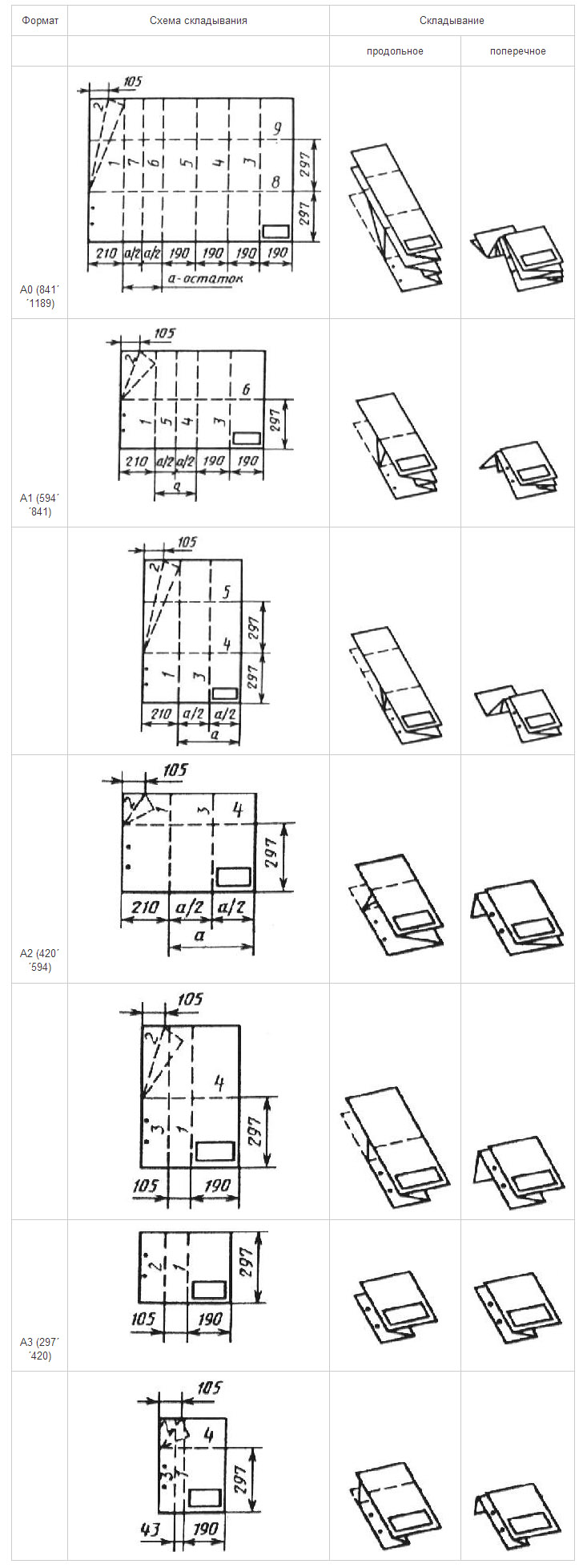 Требования к складыванию чертежей регламентируются ГОСТ 2.501–2013 «Правила учета и хранения». Способ складывания зависит от расположения основной надписи на чертеже.