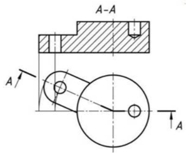 Ломаный разрез формируется при рассечении детали пересекающимися плоскостями. При создании изображения секущие плоскости условно поворачивают так, чтобы они совпали в одну плоскость, и направление этого поворота может не совпадать с направлением взгляда.