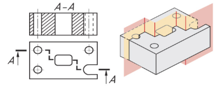 Секущие разрезы позволяют показать несколько уровней сечения, проводя линии разреза на разных высотах или глубинах. Такие разрезы могут быть полезными для многослойных конструкций, где важно понять, как слои взаимодействуют друг с другом.