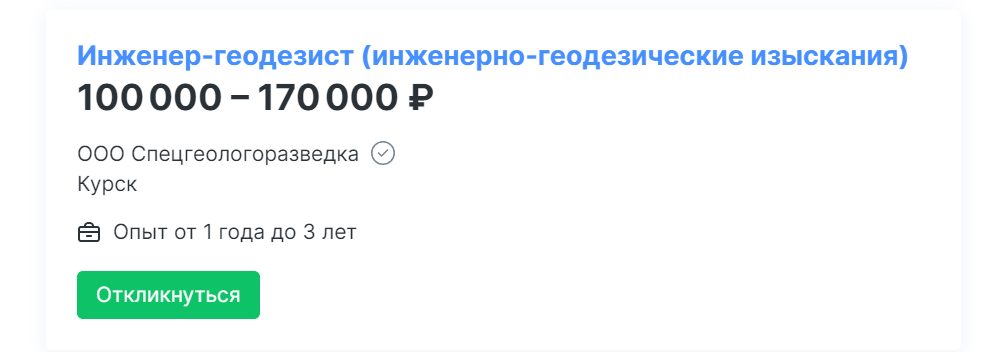 Зарплата геодезиста в 2024 году может варьироваться в зависимости от уровня опыта, специализации, местоположения работы и размера компании. В среднем по стране геодезисты получают заработную плату, начиная от 75 000 р., а в Москве эта цифра может доходить до 150 000 р. и выше.