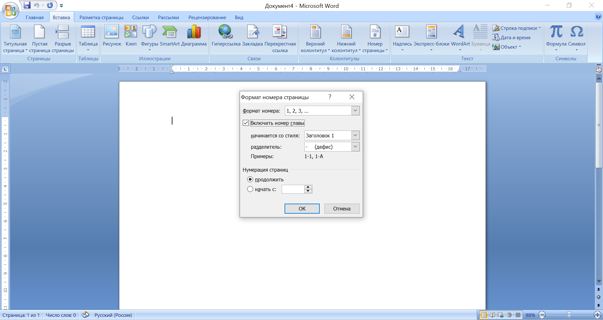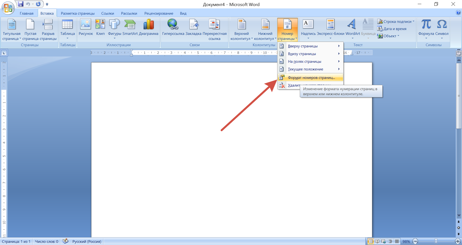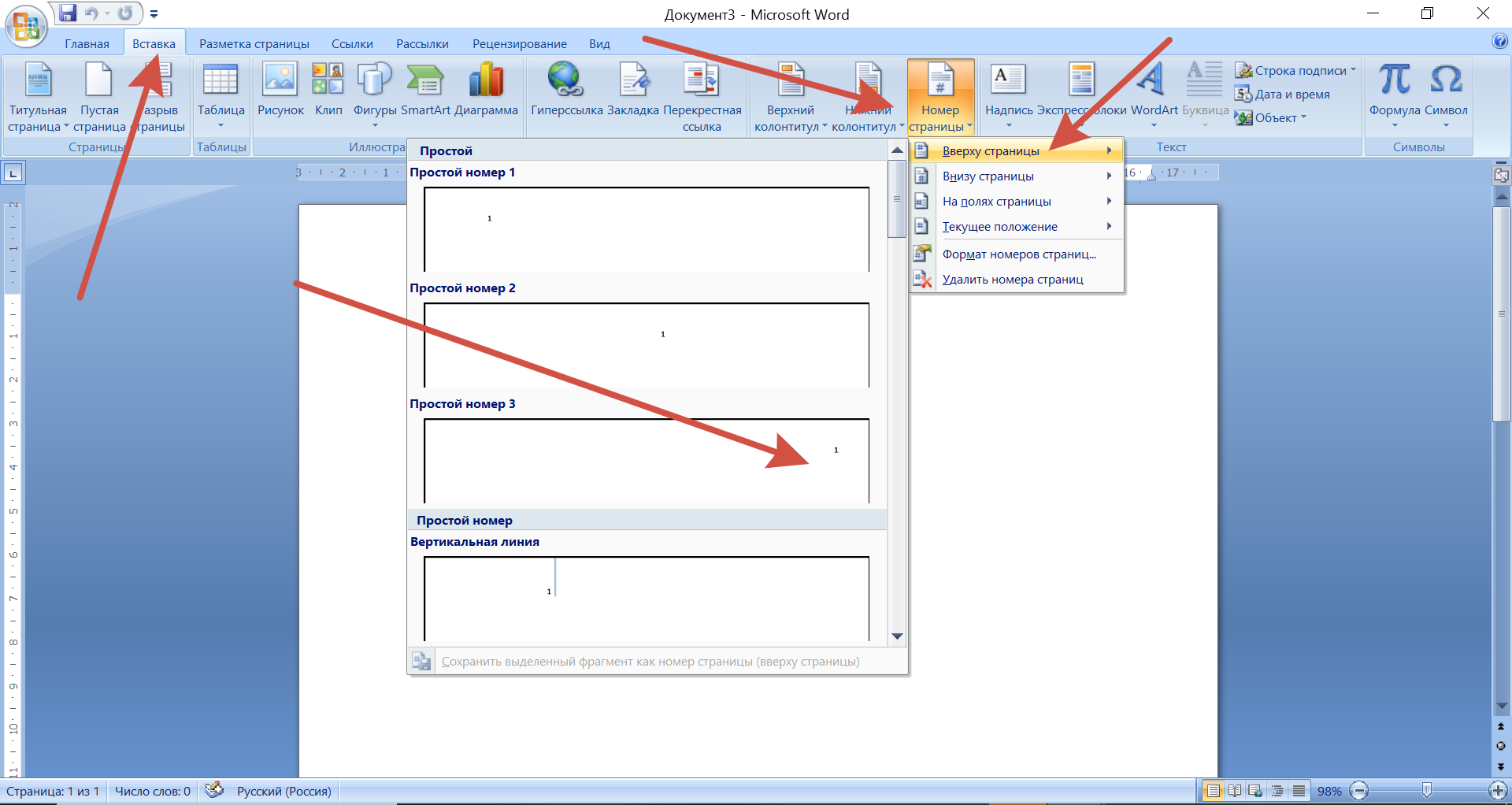 Пошаговая инструкция автоматической нумерации страниц в реферате: